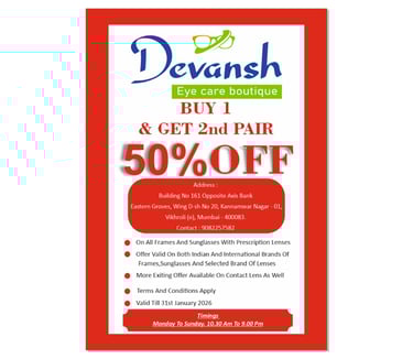 See the world clearly with Devansh Eye Care Boutique – trusted quality, stylish eyewear, expert service and unmatched comfort for every vision need.